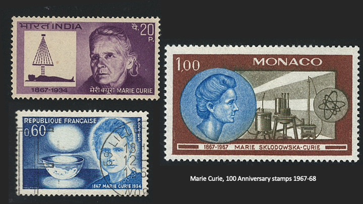 Marie Curie was first woman scientist to feature on a postage stamp. This was in 1938, a mere four years after her death. The reason for these postage stamps was to celebrate 40 years of discovery of radium. Marie and Pierre Curie had made this discovery in 1898.