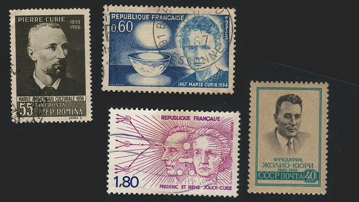In 1896, a French physicist Henry Becquerel discovered that like X-rays, Uranium also emits invisible rays. However, unlike X-rays these invisible rays could be deflected by electrical or magnetic fields. Marie chose to study Bacquerel’s effect and voltage generated by uranium crystals for her doctoral thesis. About 15 years earlier, Pierre Curie and his brother Jacques had invented an electrometer. This instrument could measure small electrical currents, and Marie calibrated this instrument further. This iconic electrometer features in various postage postage stamps.
