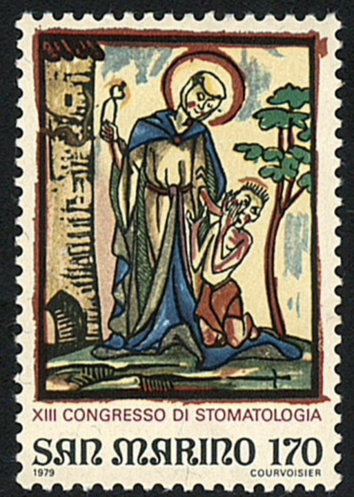 A postage stamp from Austria depicts St Apollinia – Patron saint of dentistry. Throughout history, forced tooth extraction was used as a means of torture. An older description is torture of early Christians. A brazen incident took place in Alexandria, in 248 AD, when Romans tortured St Apollonia and violently extracted her teeth. She later jumped in fire, and was burnt to death. She is regarded as patroness of dentistry and embodiment of pain associated with diseased teeth.
